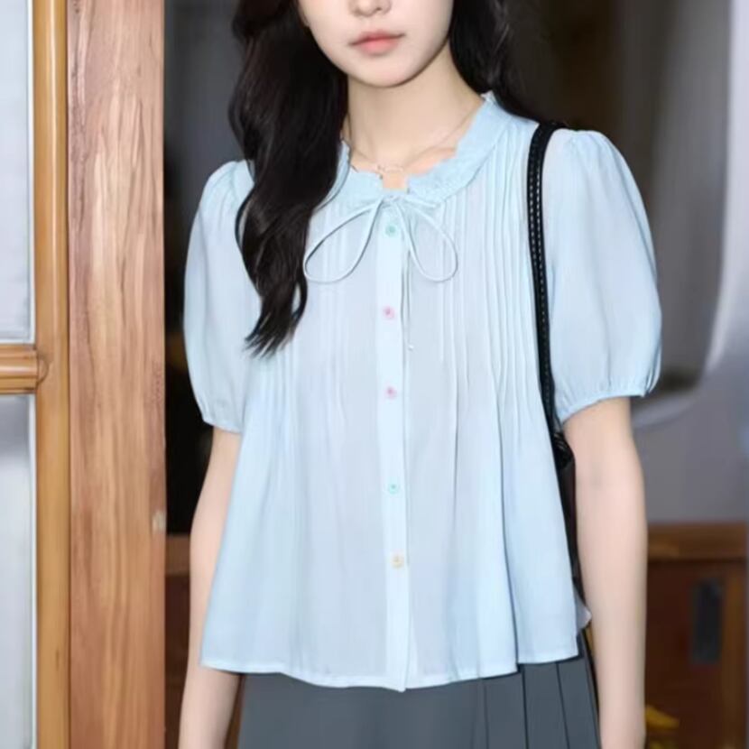 リボンフリルネックギャザーブラウス ・76330