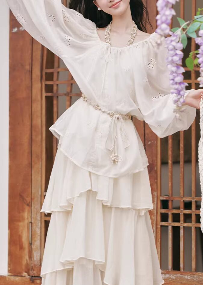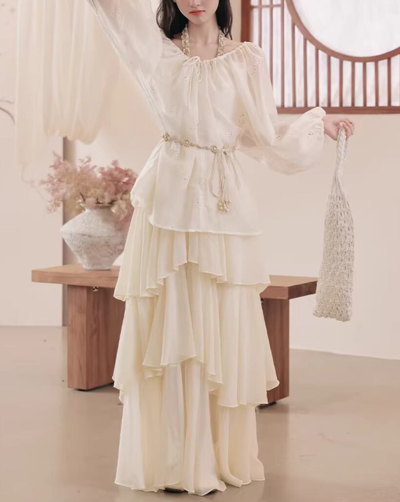 【2点セット】ウエストマークカシュクールブラウス+フラワーミニスカート ・75346