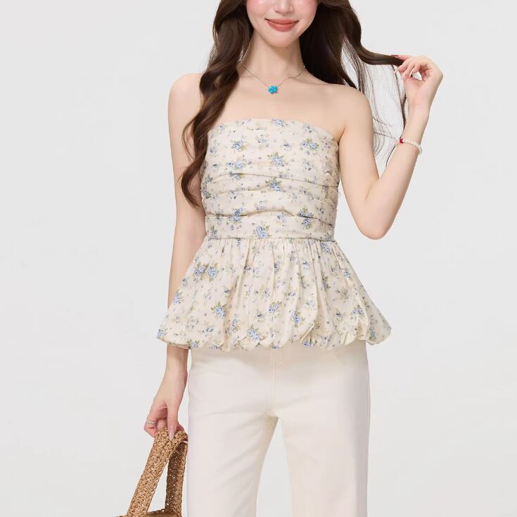 フラワープリントリボンギャザーキャミソール ・76472