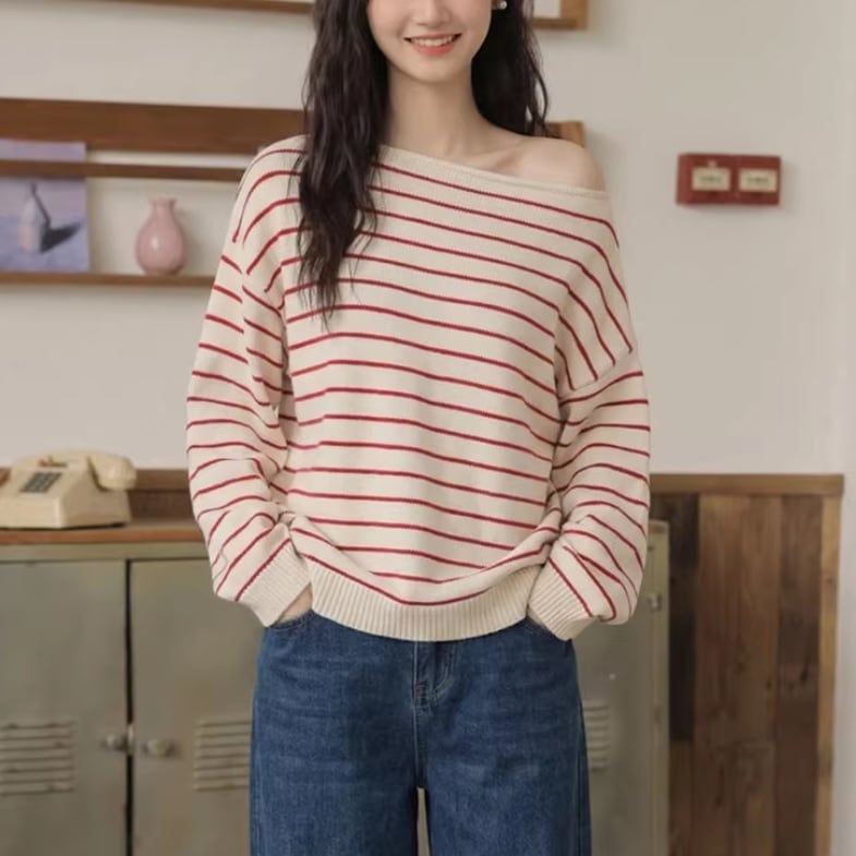 2色/フェイクレイヤードケーブルニットトップス ・75332