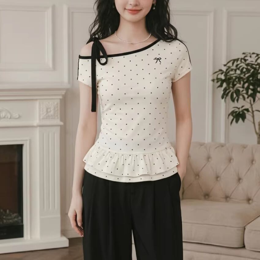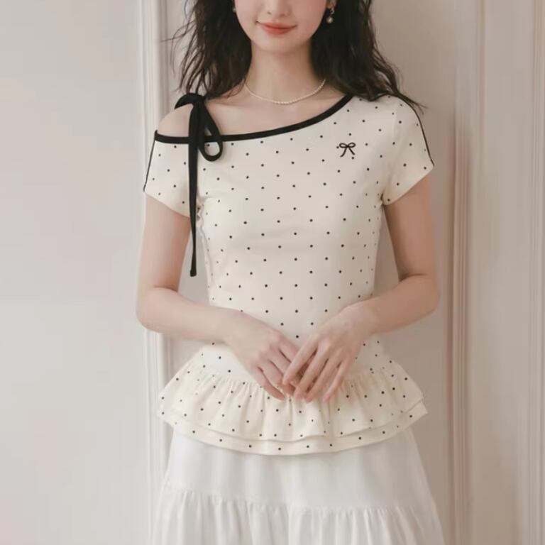 レースカラーアシメボタンドッキングトップス ・71106