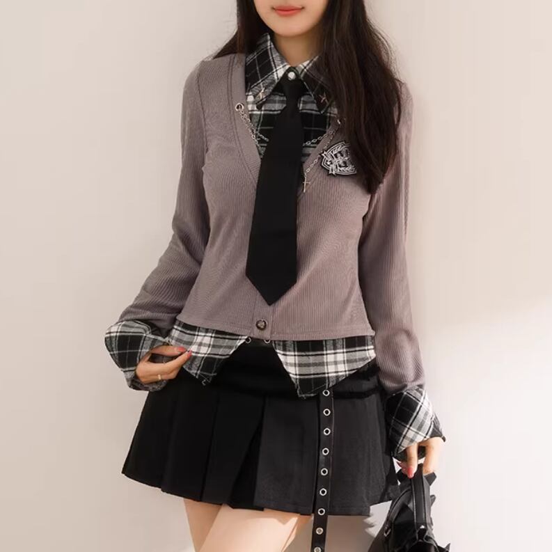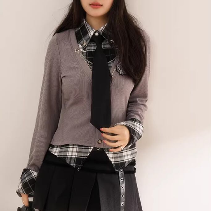2色/フェイクレイヤードケーブルニットトップス ・75332