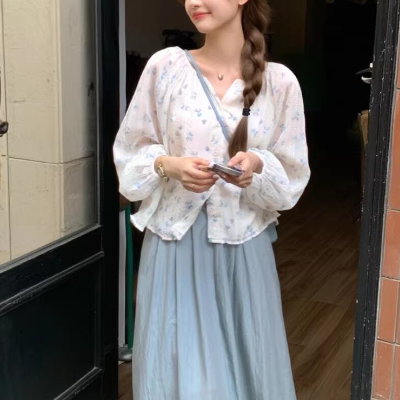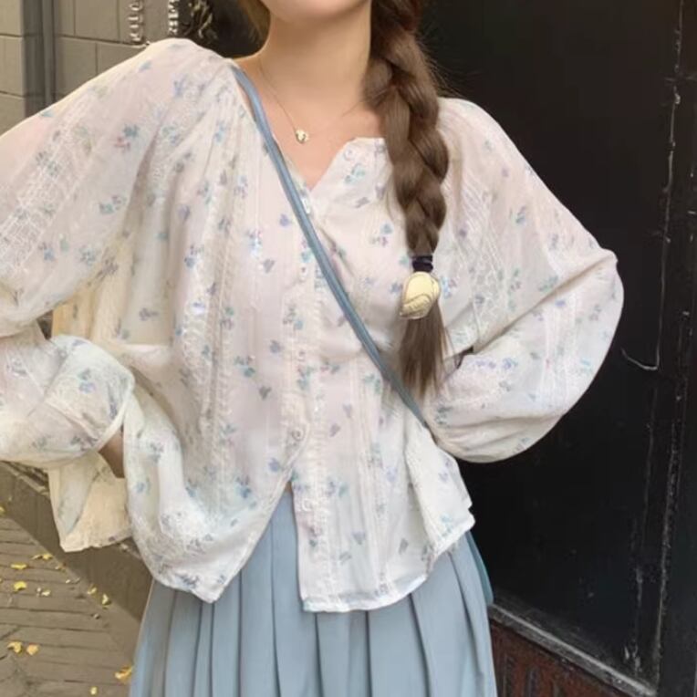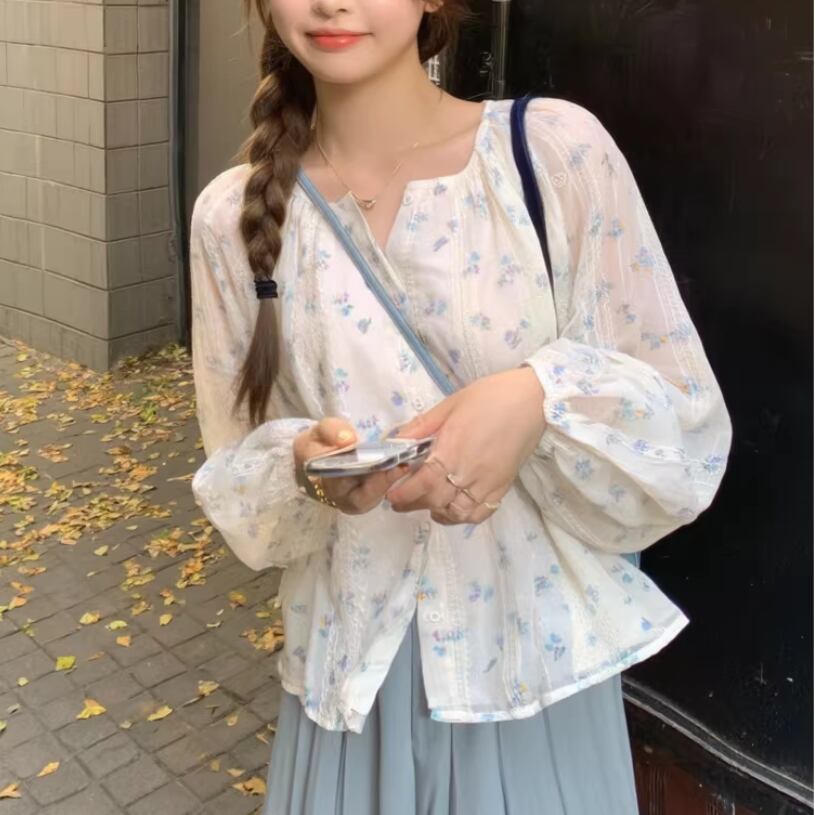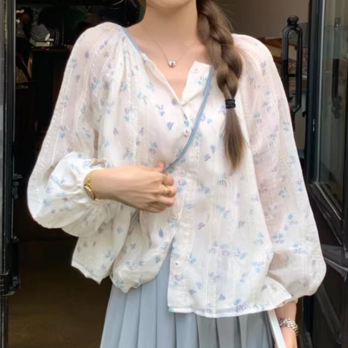 フラワー刺繍パフスリーブブラウス ・76536