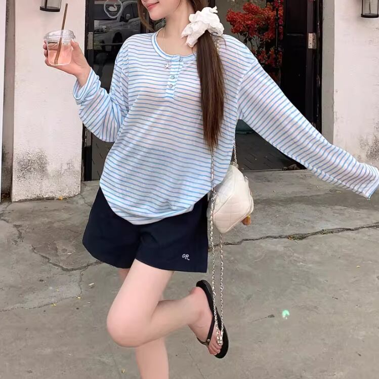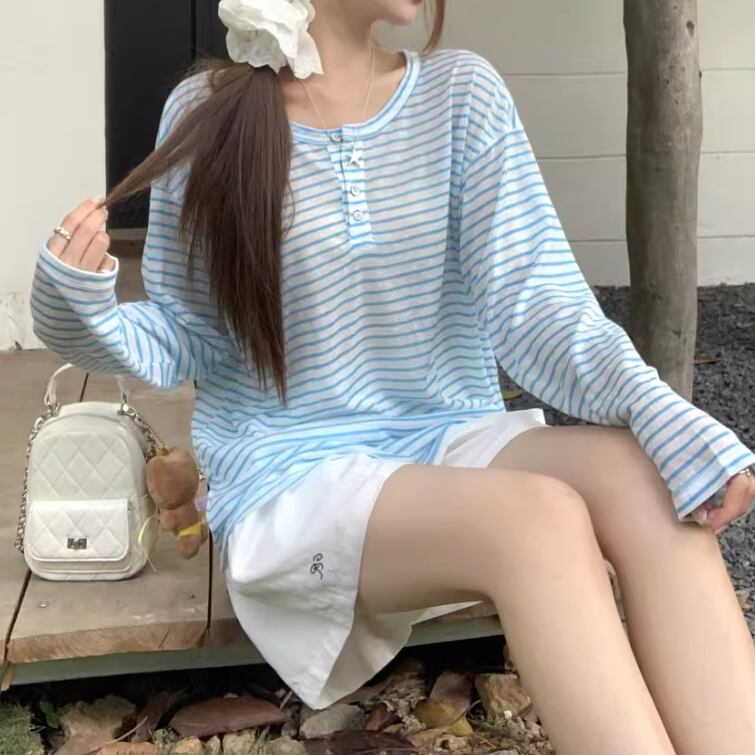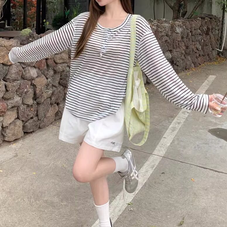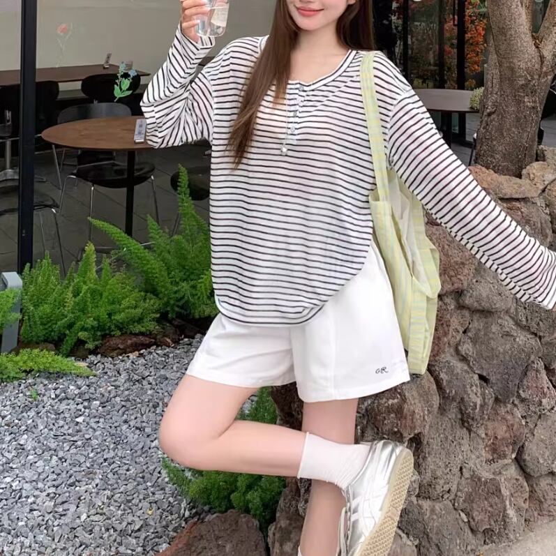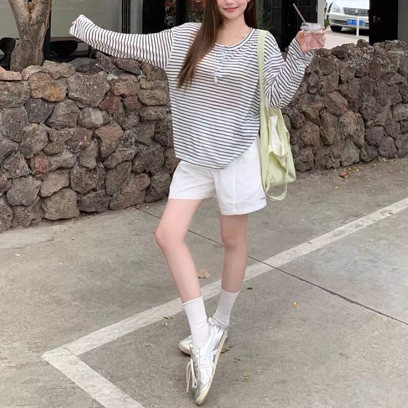【2点セット】ストライプフライングスリーブシャツ+ハイウエストバルーンミニスカ ・69972