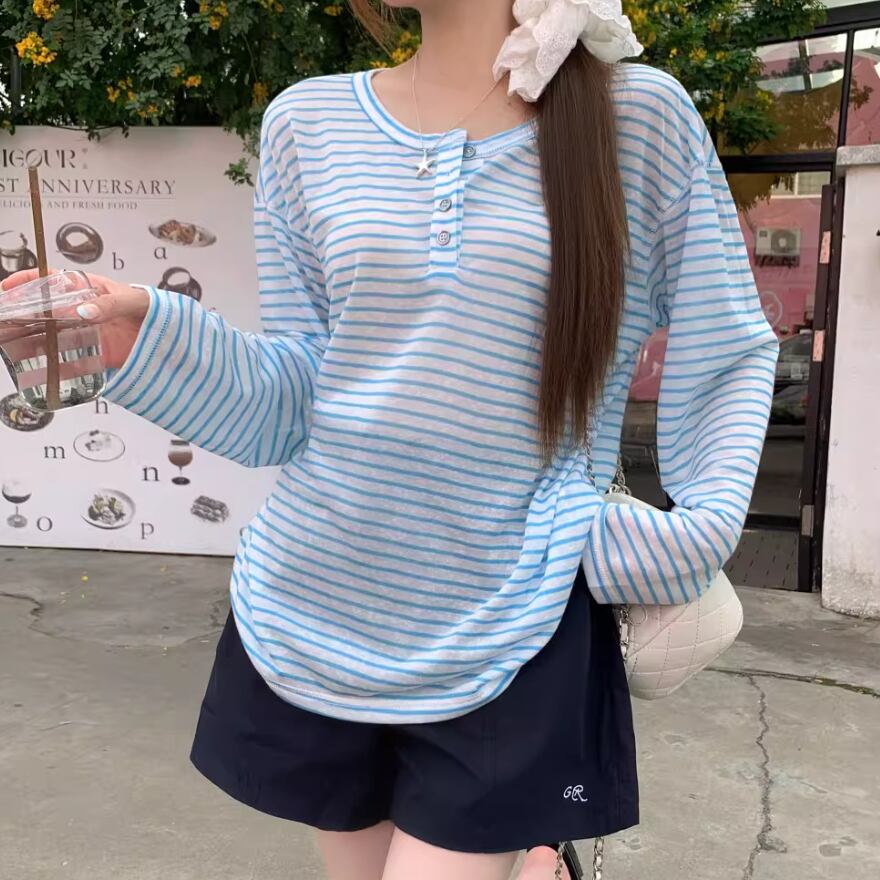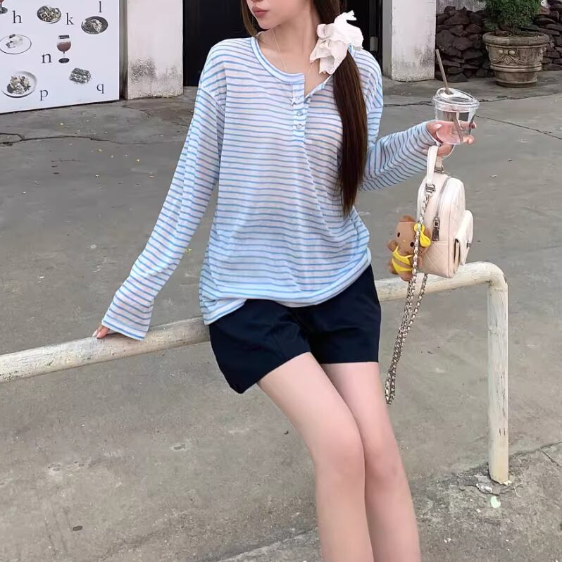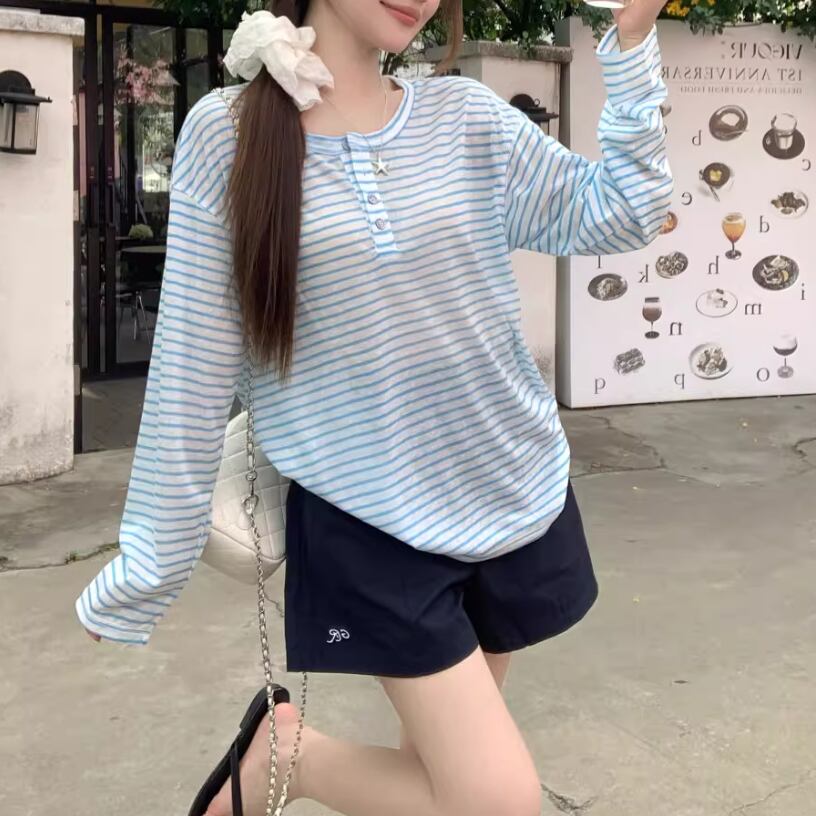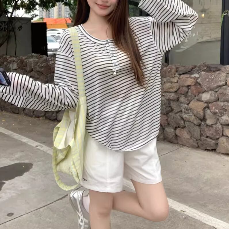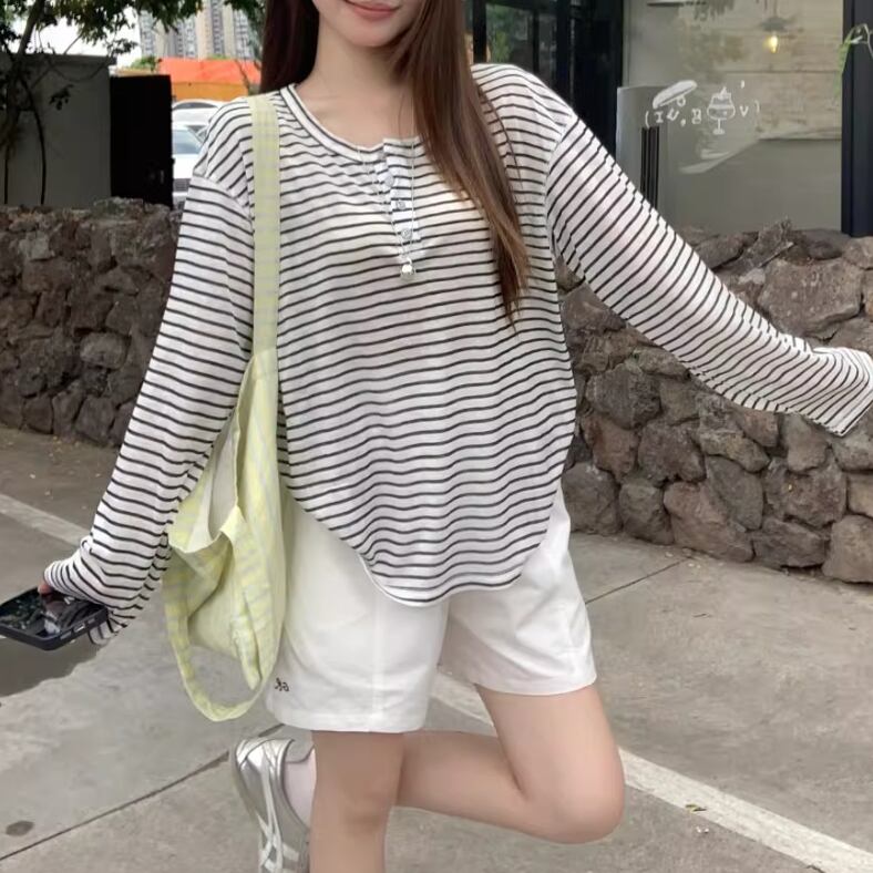 【2点セット】ストライプフライングスリーブシャツ+ハイウエストバルーンミニスカ ・69972