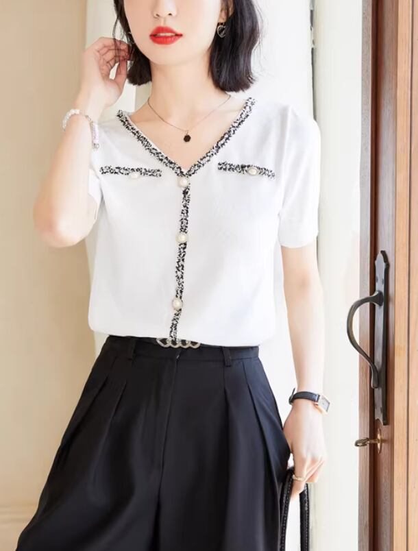 レースカラーアシメボタンドッキングトップス ・71106