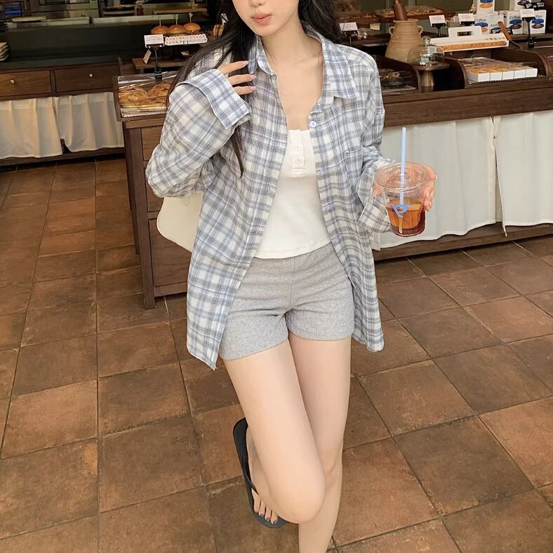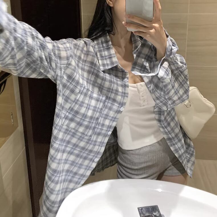 チェックスカラップレースヘムブラウス ・76379