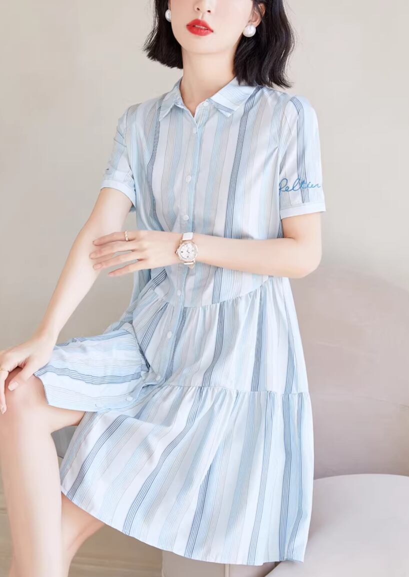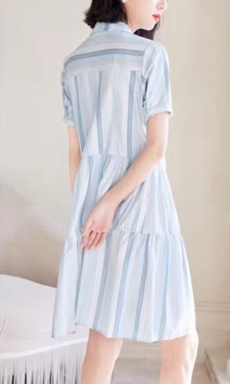 【2点セット】ストライプ柄パフスリーブワンピ+ベルト ・68546