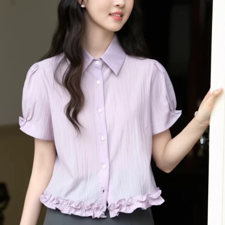 カットアウトデザインパフスリーブブラウス ・76540