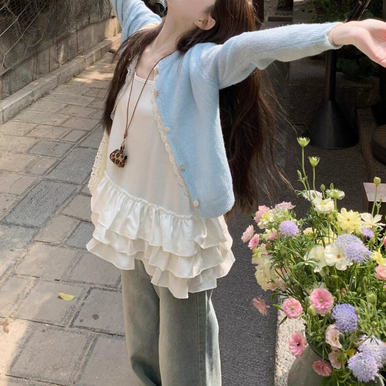 ▽Instagram「新作情報配信中」 フォローお願いいたします。 https://www.instagram.com/sucrier_closet/ ▼サイズ [ フリーサイズ ] カーデ:着丈50cm バスト98cm 肩幅37cm 袖丈60cm キャミ:着丈55cm バスト96cm ※1-3cm程度の誤差がある場合がございます。予めご了承ください。 ▼シーズン 春,夏 ▼同じカテゴリの商品はこちら https://www.sucrier.jp/categories/1737171 ▽お支払い方法 ・クレジットカード決済 ・キャリア決済 (docomo/au/Softbank/Y!mobile) ・後払い決済 (商品お届け後コンビニ払いなど) ▽注意点 ※こちらの商品は決済から10日-3週間前後でのお届けとなります。 ※配送日時指定等に関しては、ご指定できないことご了承くださいませ。 ※できる限り早くお届けできるように手配させて頂きます。 ※検品はしておりますが、もし届いた商品に不備がありましたら、誠実に対応させていただきます。 商品ID:SC076364