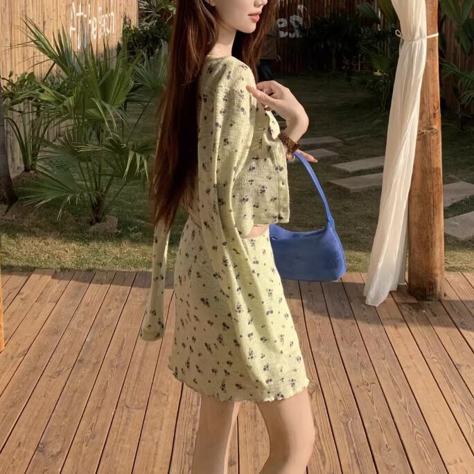 【2点セット】ウエストマークカシュクールブラウス+フラワーミニスカート ・75346