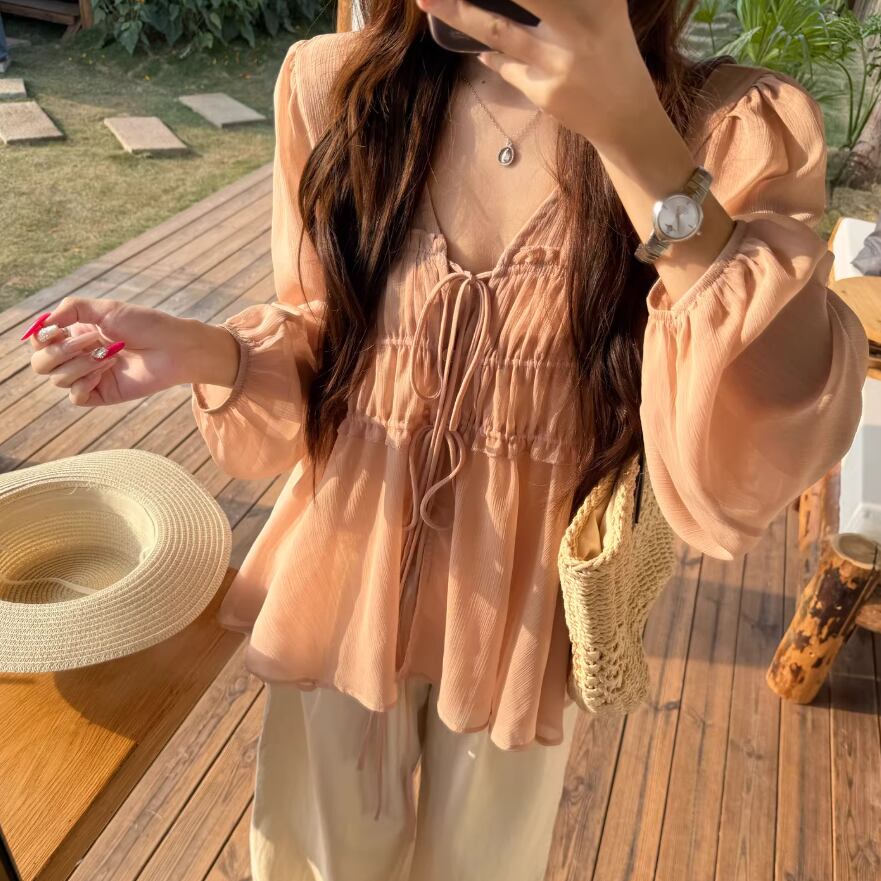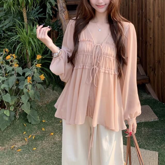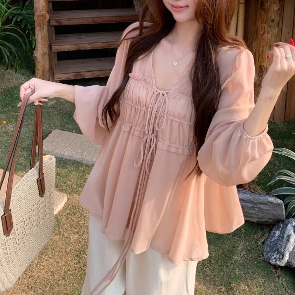 ▽Instagram「新作情報配信中」 フォローお願いいたします。 https://www.instagram.com/sucrier_closet/ ▼サイズ [ Sサイズ ] ブラウス:着丈64cm バスト86cm 肩幅34cm 袖丈59cm キャミ:着丈30cm バスト80cm [ Mサイズ ] ブラウス:着丈65cm バスト90cm 肩幅35cm 袖丈60cm キャミ:着丈31cm バスト84cm [ Lサイズ ] ブラウス:着丈66cm バスト94cm 肩幅36cm 袖丈61cm キャミ:着丈32cm バスト88cm ※1-3cm程度の誤差がある場合がございます。予めご了承ください。 ▼シーズン 春,秋 ▼同じカテゴリの商品はこちら https://www.sucrier.jp/categories/1737171 ▽お支払い方法 ・クレジットカード決済 ・キャリア決済 (docomo/au/Softbank/Y!mobile) ・後払い決済 (商品お届け後コンビニ払いなど) ▽注意点 ※こちらの商品は決済から10日-3週間前後でのお届けとなります。 ※配送日時指定等に関しては、ご指定できないことご了承くださいませ。 ※できる限り早くお届けできるように手配させて頂きます。 ※検品はしておりますが、もし届いた商品に不備がありましたら、誠実に対応させていただきます。 商品ID:SC076280