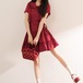レースアップリボンのチェック柄ワンピ ・67351