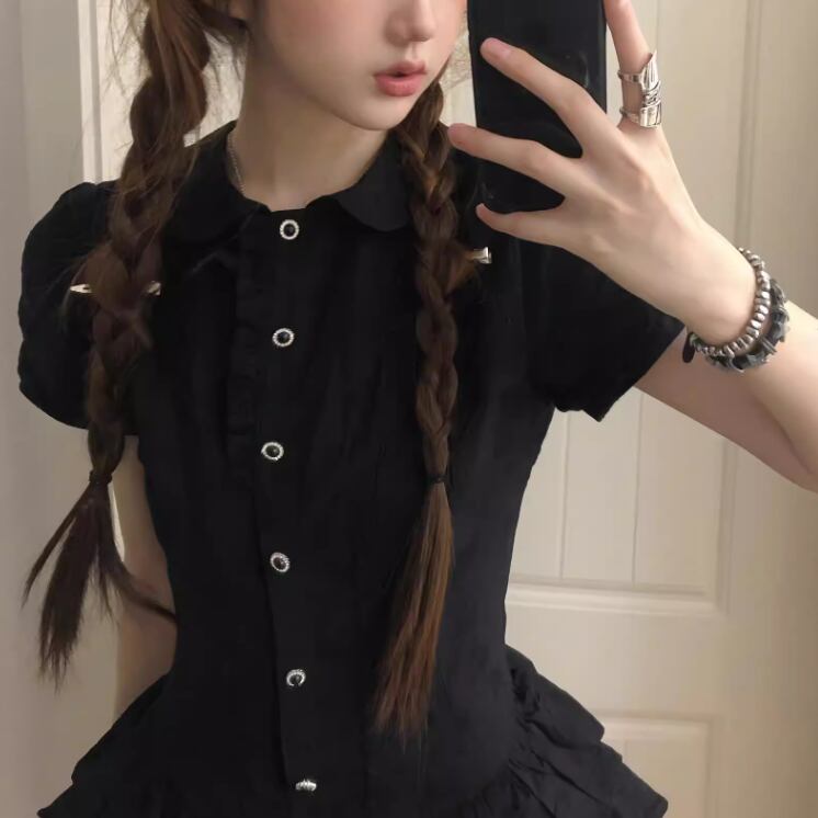 ▽Instagram「新作情報配信中」 フォローお願いいたします。 https://www.instagram.com/sucrier.official/ ▼カラー ブラック ▼サイズ [ Sサイズ ] 着丈72cm バスト85cm 肩幅36cm 袖丈16cm ウエスト65cm [ Mサイズ ] 着丈73.5cm バスト89cm 肩幅37cm 袖丈16.5cm ウエスト69cm [ Lサイズ ] 着丈75cm バスト93cm 肩幅38cm 袖丈17cm ウエスト73cm [ XLサイズ ] 着丈76.5cm バスト97cm 肩幅39cm 袖丈17.5cm ウエスト77cm ※1-3cm程度の誤差がある場合がございます。予めご了承ください。 ▼シーズン 春,夏 ▼同じカテゴリの商品はこちら https://www.sucrier.jp/categories/1713098 ▽お支払い方法 ・クレジットカード決済 ・キャリア決済 (docomo/au/Softbank/Y!mobile) ・後払い決済 (商品お届け後コンビニ払いなど) ▽注意点 ※こちらの商品は決済から10日-3週間前後でのお届けとなります。 ※配送日時指定等に関しては、ご指定できないことご了承くださいませ。 ※できる限り早くお届けできるように手配させて頂きます。 ※検品はしておりますが、もし届いた商品に不備がありましたら、誠実に対応させていただきます。 商品ID:SC076752