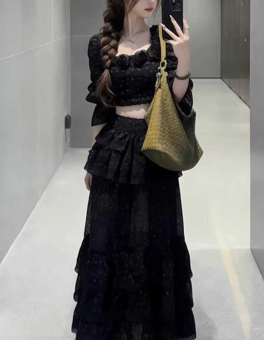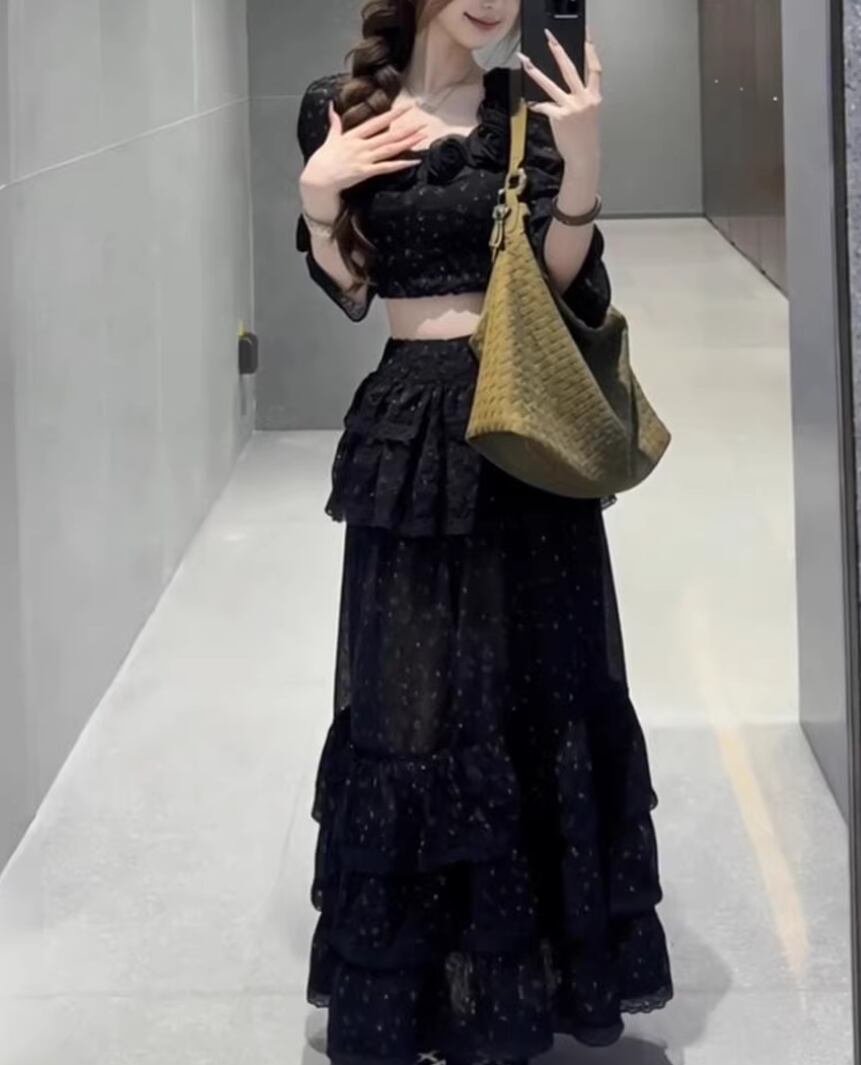 ▽Instagram「新作情報配信中」 フォローお願いいたします。 https://www.instagram.com/sucrier.official/ ▼カラー ブラック ▼サイズ [ Sサイズ ] トップス:着丈39cm バスト80cm 袖丈66cm スカート:着丈96cm ウエスト64cm ヒップ120cm [ Mサイズ ] トップス:着丈40cm バスト84cm 袖丈67cm スカート:着丈97cm ウエスト65cm ヒップ124cm [ Lサイズ ] トップス:着丈41cm バスト88cm 袖丈68cm スカート:着丈98cm ウエスト66cm ヒップ128cm [ XLサイズ ] トップス:着丈42cm バスト92cm 袖丈69cm スカート:着丈99cm ウエスト67cm ヒップ132cm ※1-3cm程度の誤差がある場合がございます。予めご了承ください。 ▼シーズン 春,夏 ▼同じカテゴリの商品はこちら https://www.sucrier.jp/categories/1737171 ▽お支払い方法 ・クレジットカード決済 ・キャリア決済 (docomo/au/Softbank/Y!mobile) ・後払い決済 (商品お届け後コンビニ払いなど) ▽注意点 ※こちらの商品は決済から10日-3週間前後でのお届けとなります。 ※配送日時指定等に関しては、ご指定できないことご了承くださいませ。 ※できる限り早くお届けできるように手配させて頂きます。 ※検品はしておりますが、もし届いた商品に不備がありましたら、誠実に対応させていただきます。 商品ID:SC076724