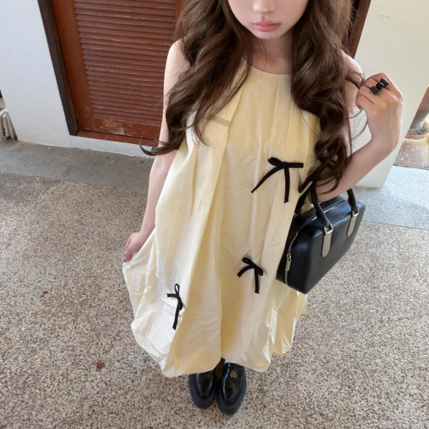 2色/チュールフラワーフリルネックボウタイワンピ ・54889