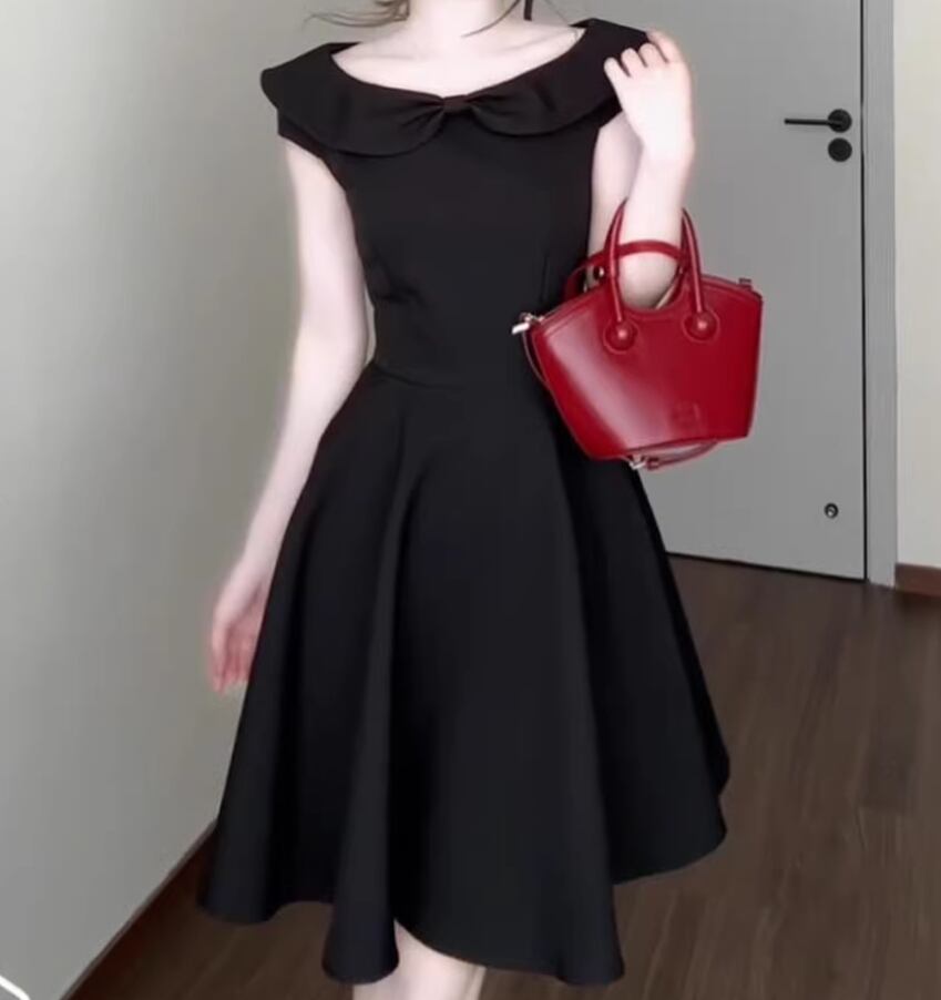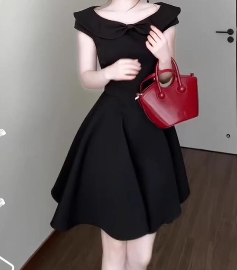 2色/チュールフラワーフリルネックボウタイワンピ ・54889