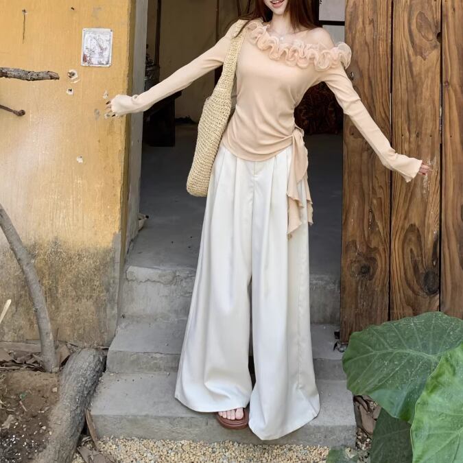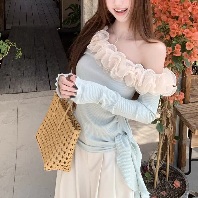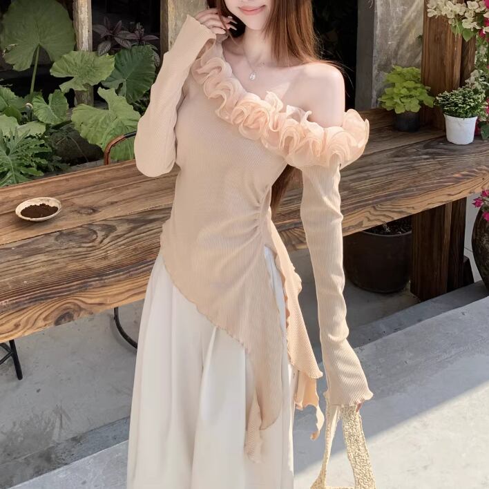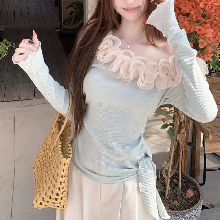レースカラーアシメボタンドッキングトップス ・71106