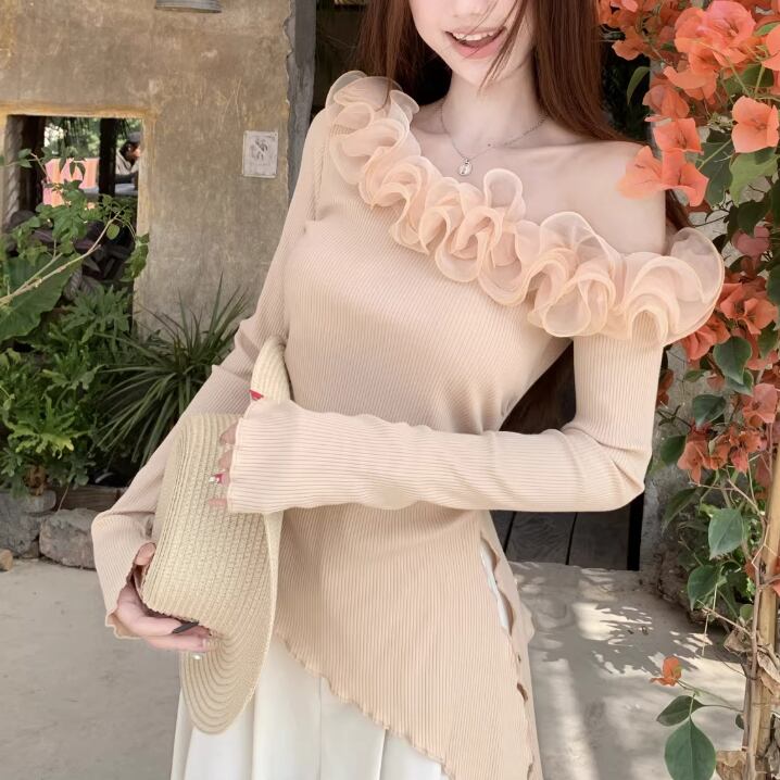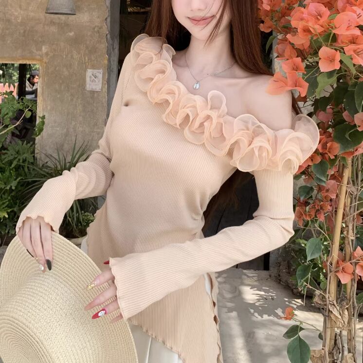 2色/フェイクレイヤードケーブルニットトップス ・75332