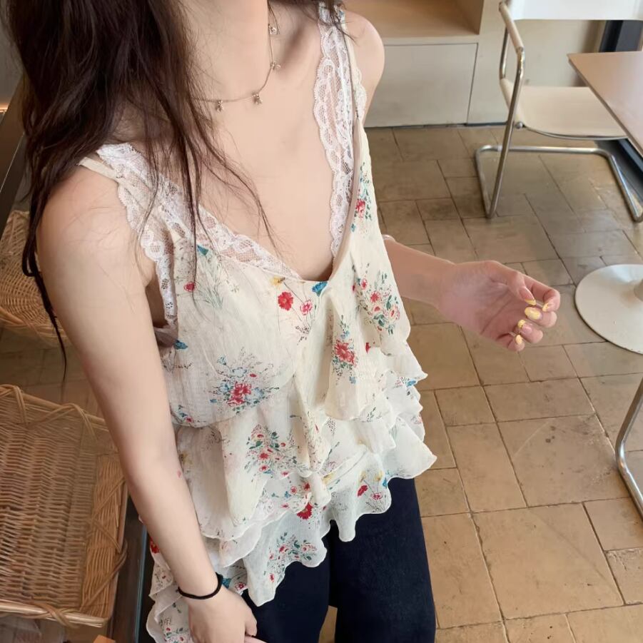 2色/ポイントフラワーホルターネックレースキャミ ・76484
