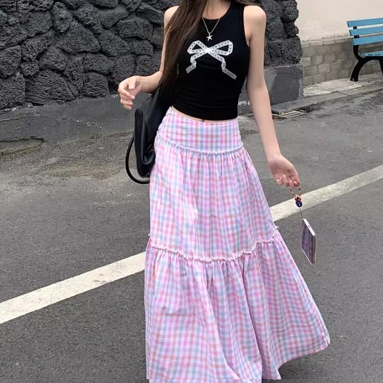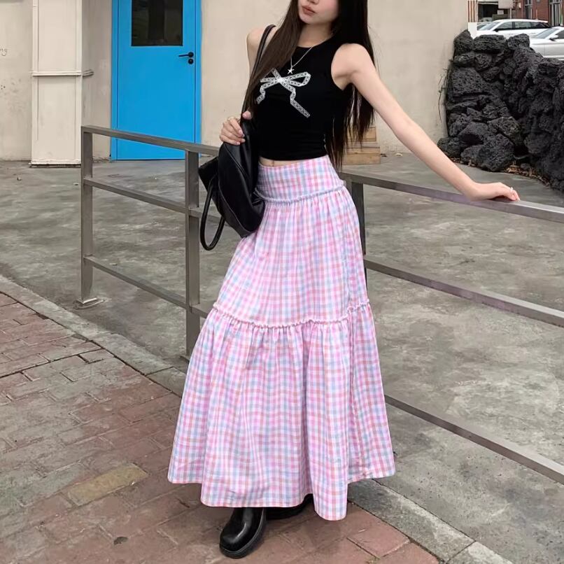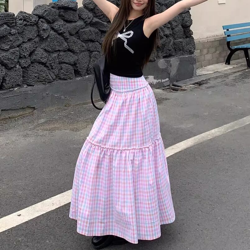 2色/ティアードフリルチェックミディスカート ・75592