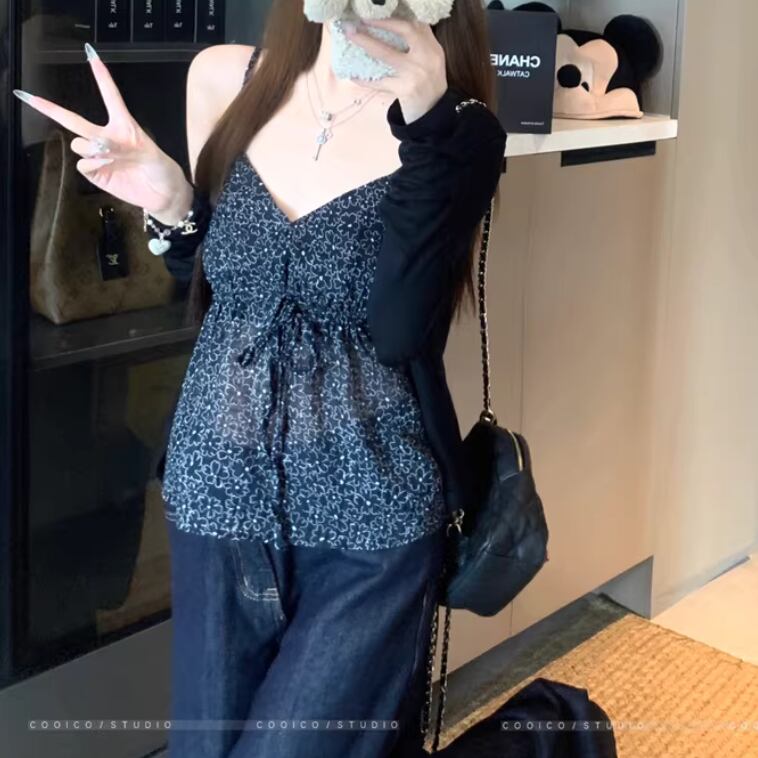 【2点セット】ウエストマークカシュクールブラウス+フラワーミニスカート ・75346