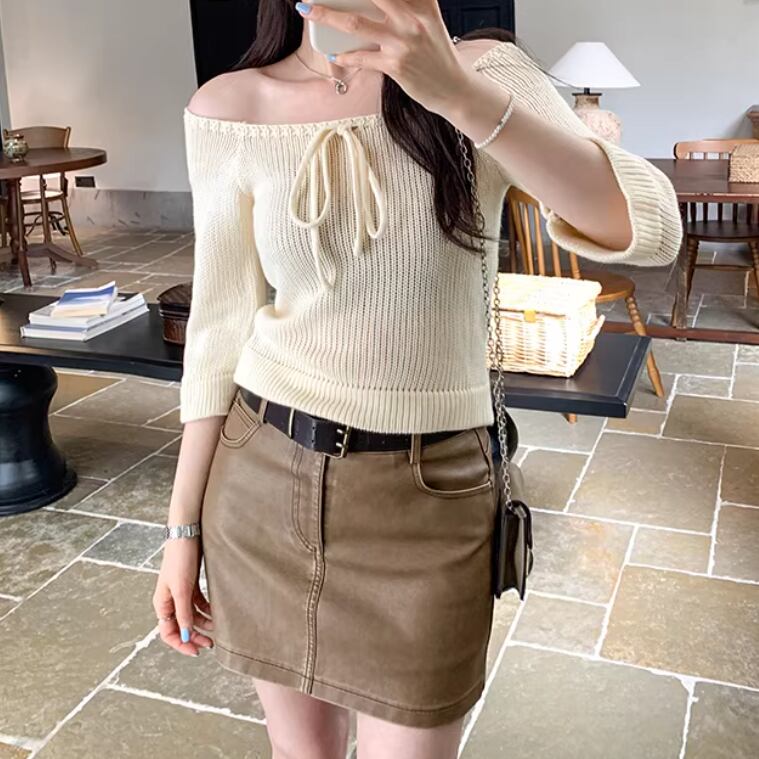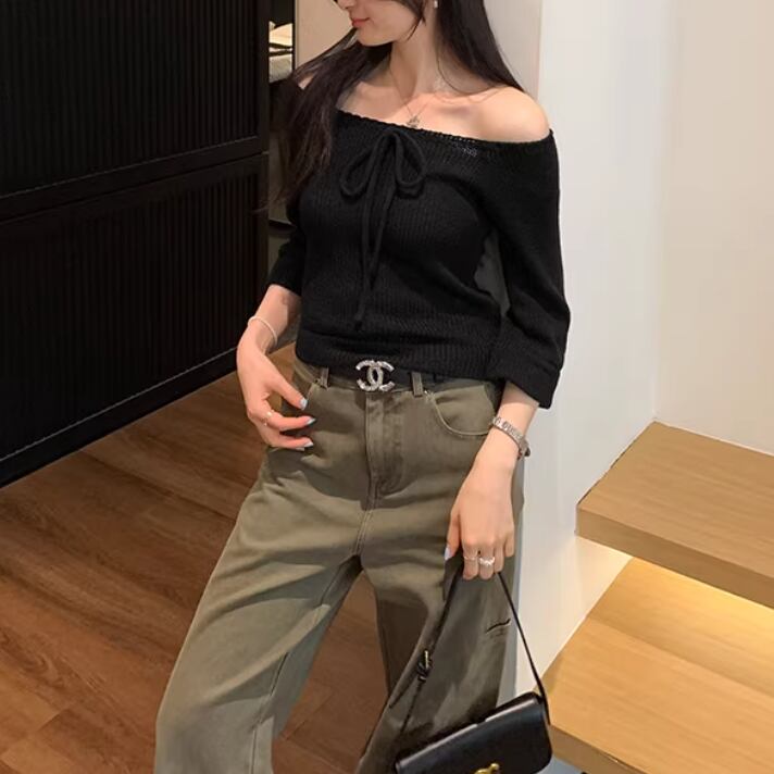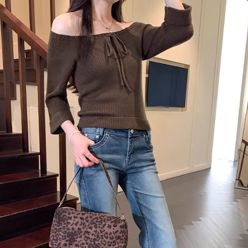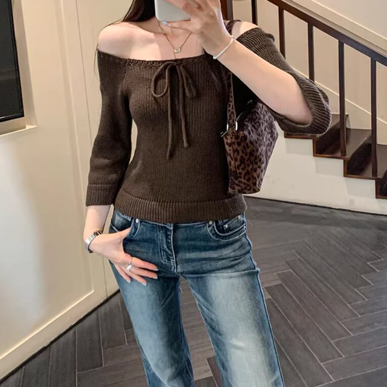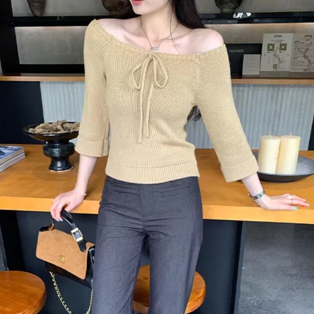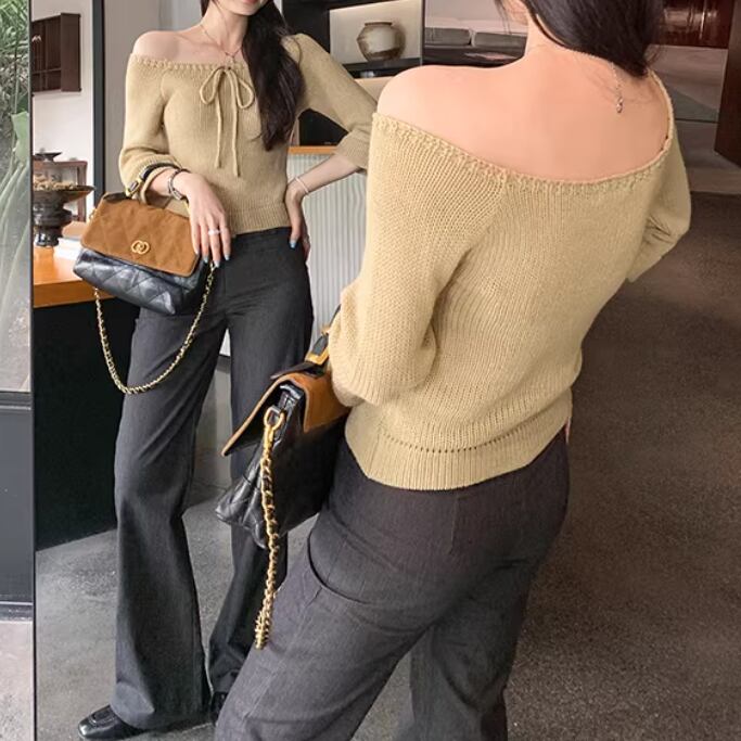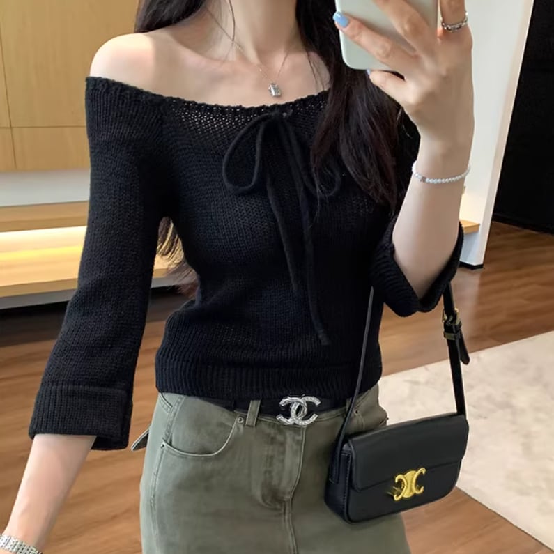 3色/ドロストリボンオフショルリブニット ・76481