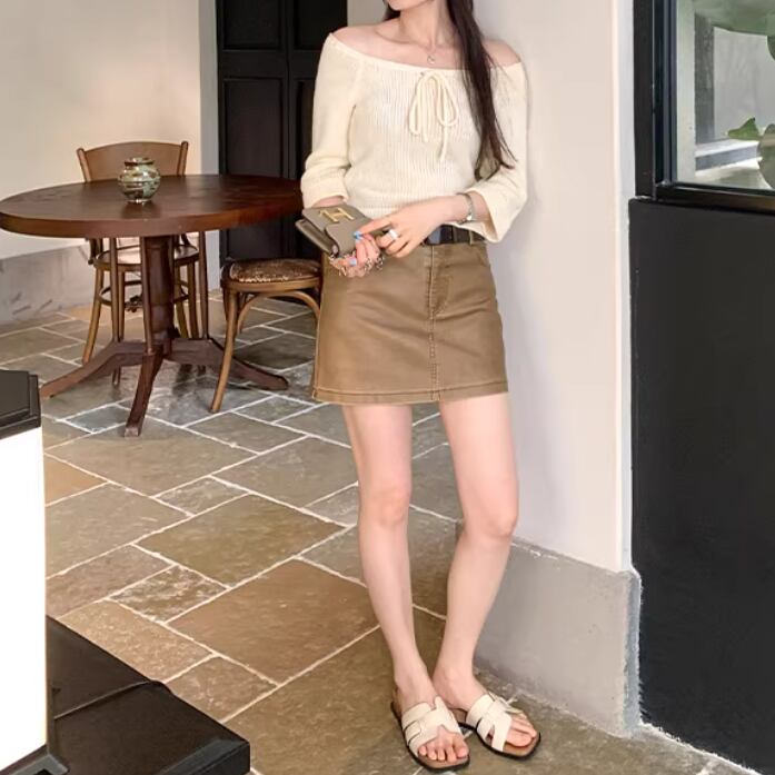 4色/ストラップネックリブニットトップス ・76489