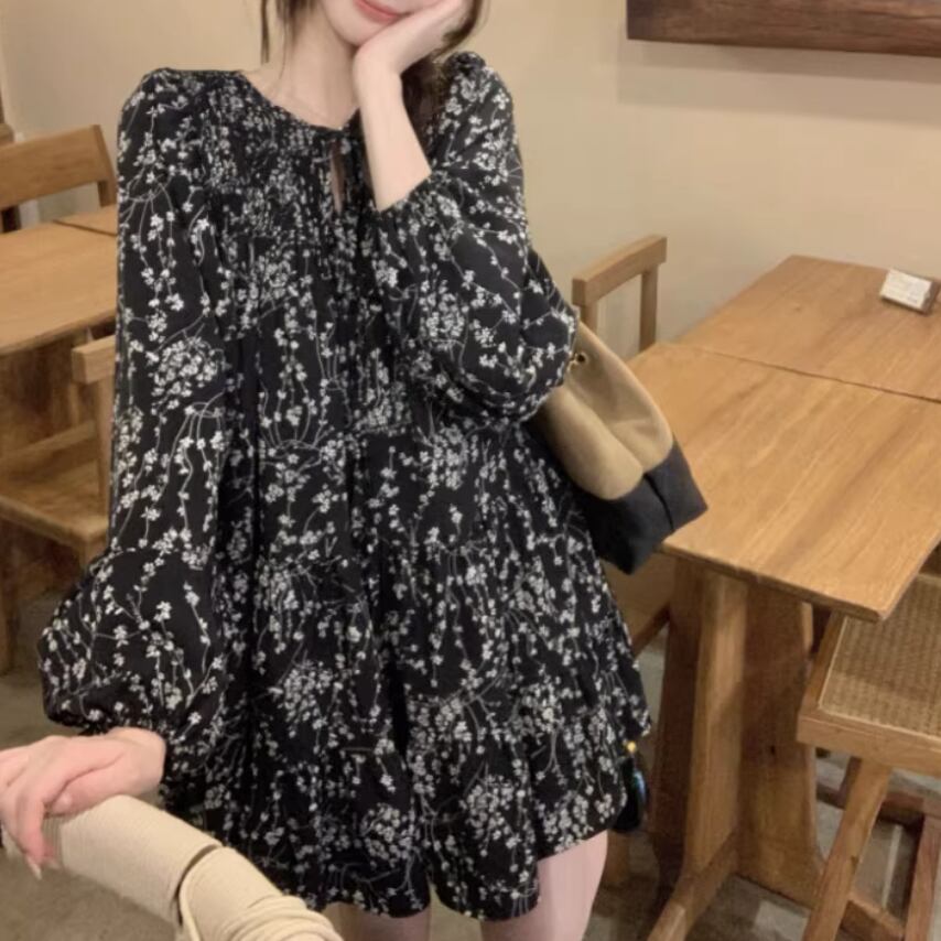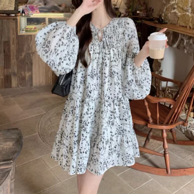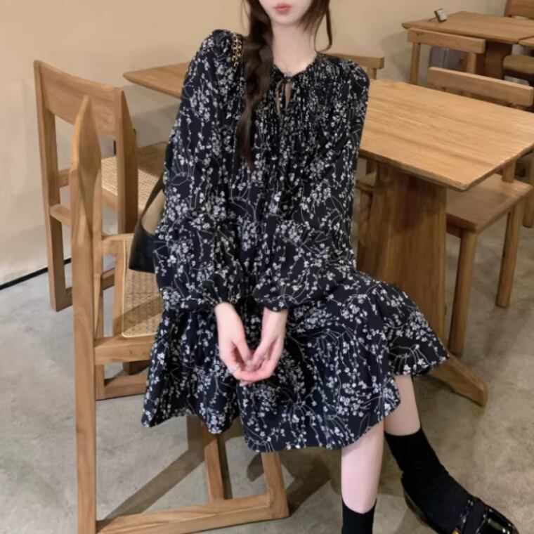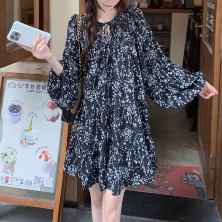 2色/チュールフラワーフリルネックボウタイワンピ ・54889