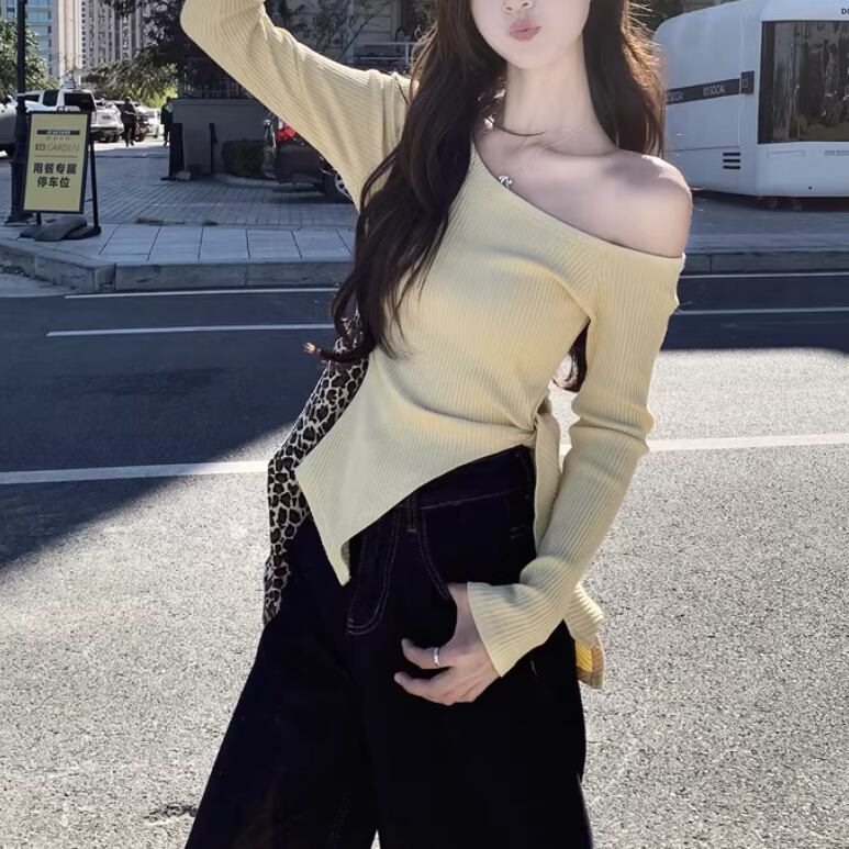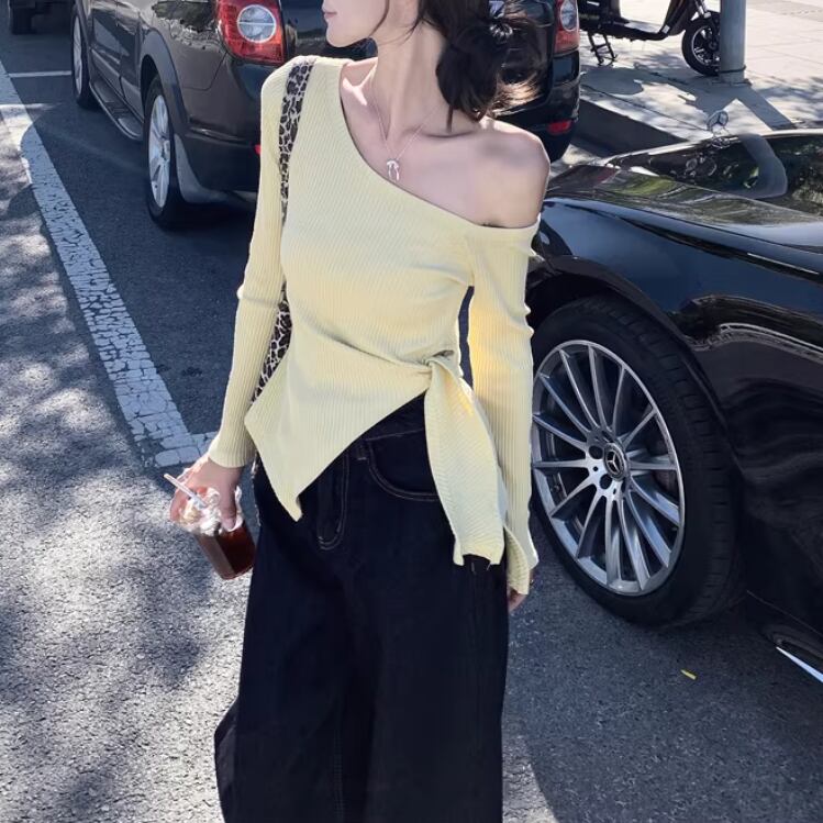 2色/フェイクレイヤードケーブルニットトップス ・75332