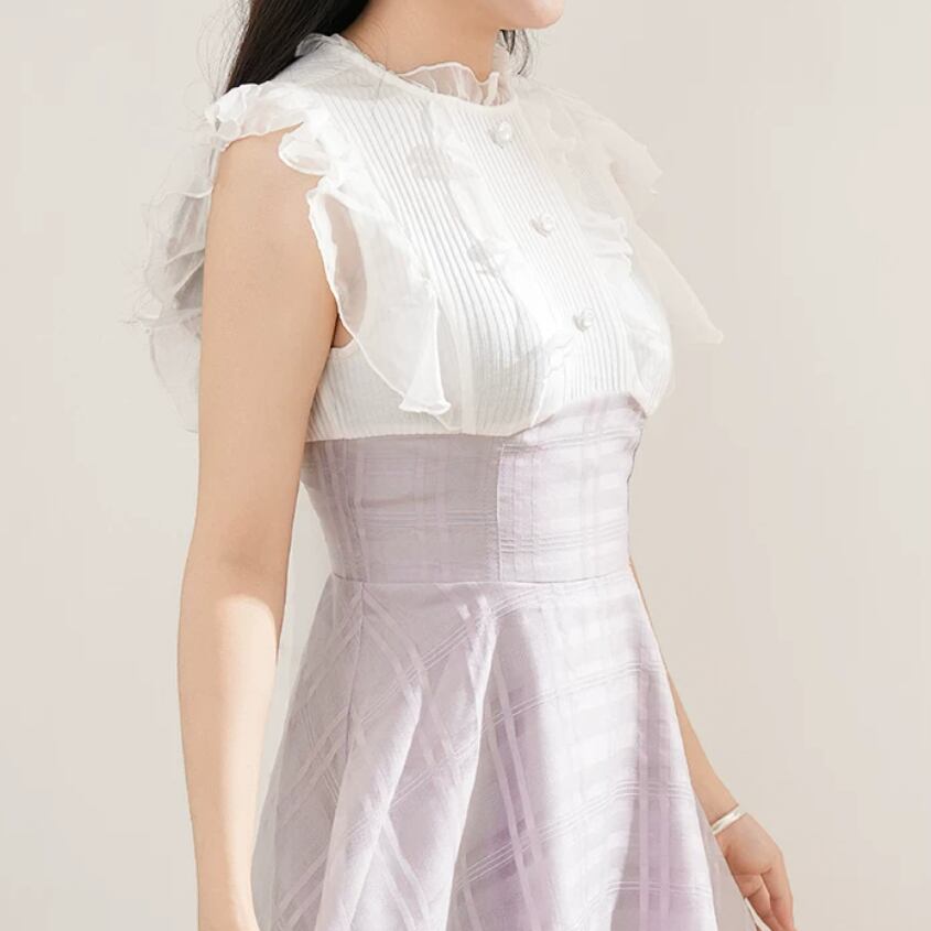2色/チュールフラワーフリルネックボウタイワンピ ・54889