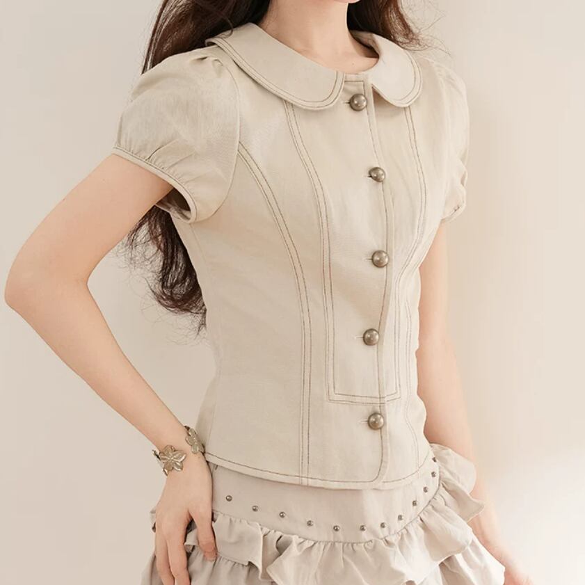 【2点セット】ストライプフライングスリーブシャツ+ハイウエストバルーンミニスカ ・69972