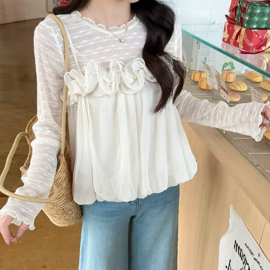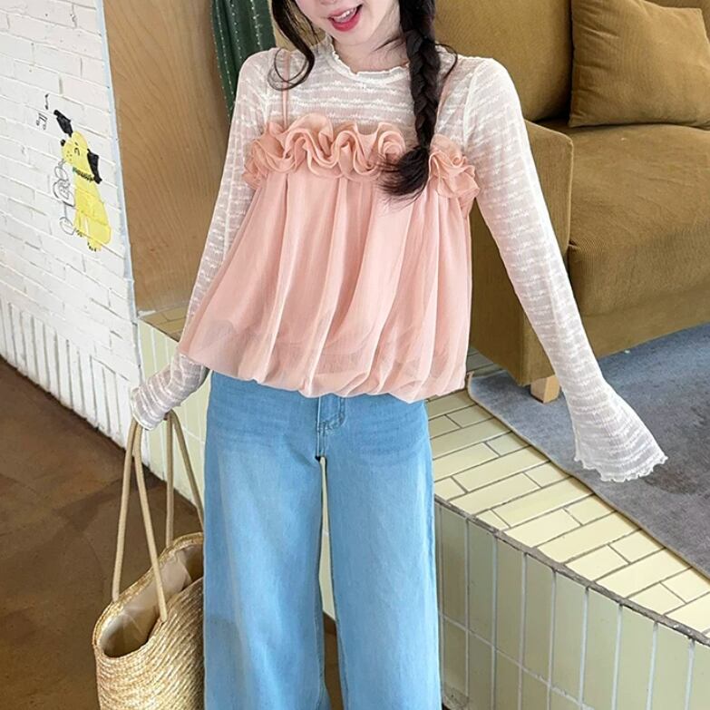 【2点セット】ストライプフライングスリーブシャツ+ハイウエストバルーンミニスカ ・69972