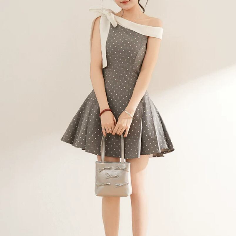 2色/チュールフラワーフリルネックボウタイワンピ ・54889