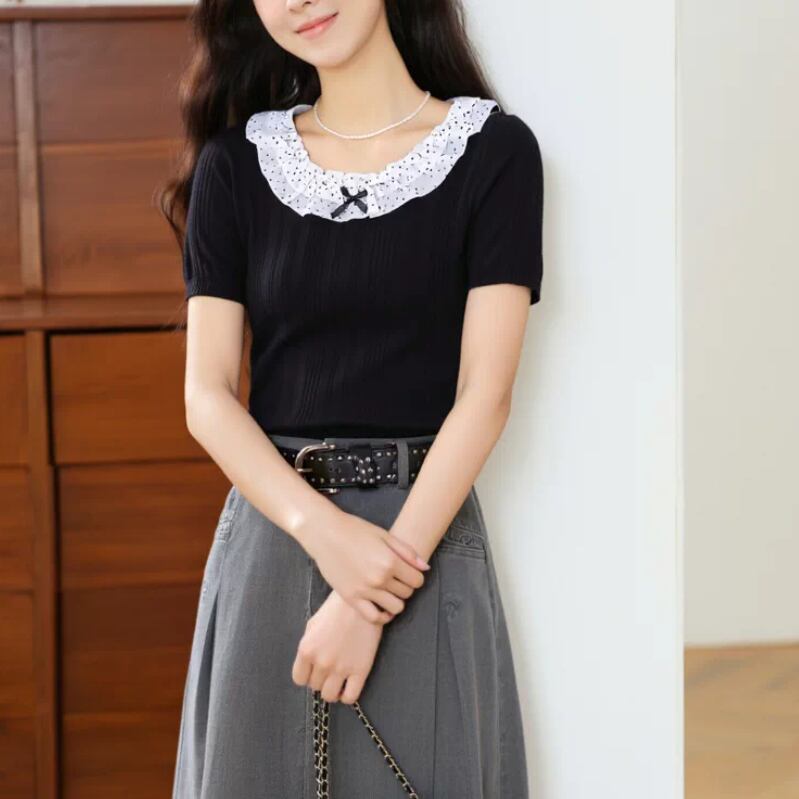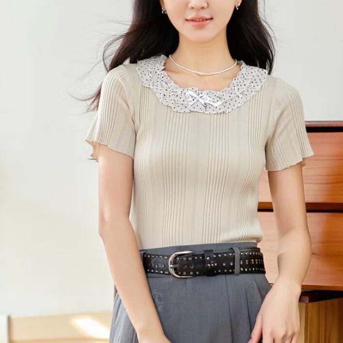 レースカラーアシメボタンドッキングトップス ・71106