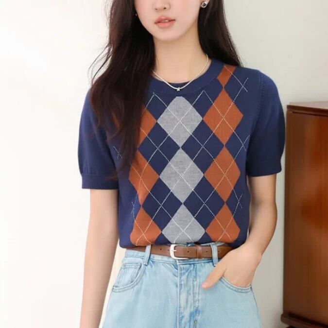 2色/フェイクレイヤードケーブルニットトップス ・75332