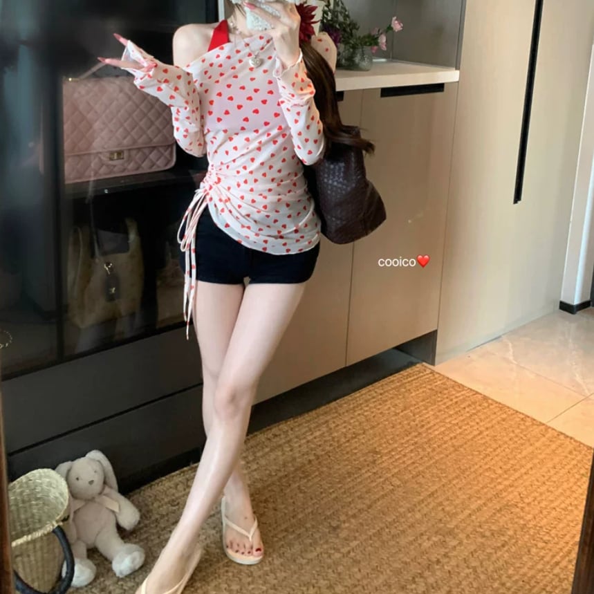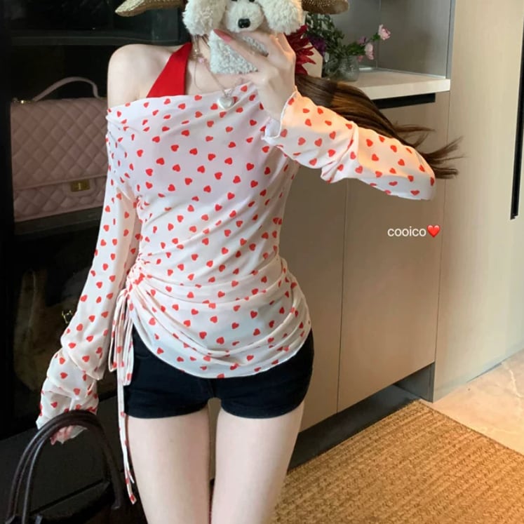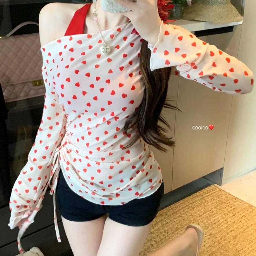 【2点セット】ウエストマークカシュクールブラウス+フラワーミニスカート ・75346
