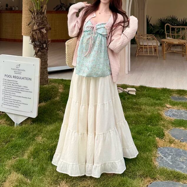 ▽Instagram「新作情報配信中」 フォローお願いいたします。 https://www.instagram.com/sucrier.official/ ▼サイズ [ Sサイズ ] キャミ:着丈38cm バスト72cm スカート:着丈92cm ウエスト64cm [ Mサイズ ] キャミ:着丈39cm バスト76cm スカート:着丈94cm ウエスト68cm [ Lサイズ ] キャミ:着丈40cm バスト80cm スカート:着丈96cm ウエスト72cm [ XLサイズ ] キャミ:着丈41cm バスト84cm スカート:着丈98cm ウエスト76cm ※1-3cm程度の誤差がある場合がございます。予めご了承ください。 ▼シーズン 春,夏 ▼同じカテゴリの商品はこちら https://www.sucrier.jp/categories/1737171 ▽お支払い方法 ・クレジットカード決済 ・キャリア決済 (docomo/au/Softbank/Y!mobile) ・後払い決済 (商品お届け後コンビニ払いなど) ▽注意点 ※こちらの商品は決済から10日-3週間前後でのお届けとなります。 ※配送日時指定等に関しては、ご指定できないことご了承くださいませ。 ※できる限り早くお届けできるように手配させて頂きます。 ※検品はしておりますが、もし届いた商品に不備がありましたら、誠実に対応させていただきます。 商品ID:SC076746