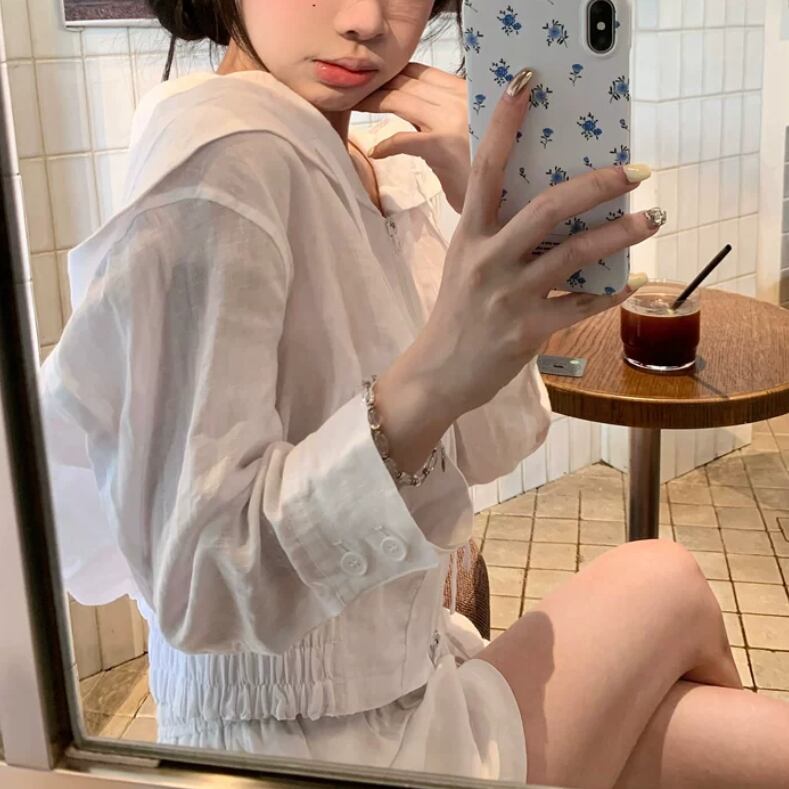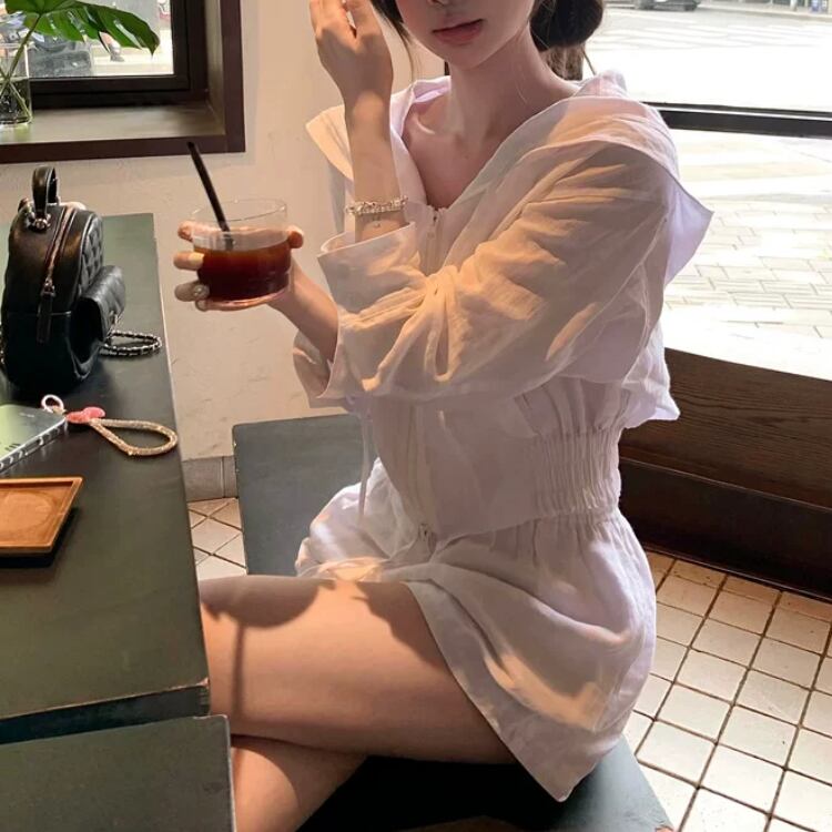 【2点セット】ストライプフライングスリーブシャツ+ハイウエストバルーンミニスカ ・69972