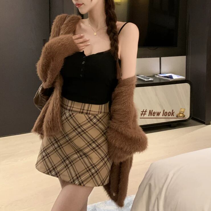 2色/アシメヘムアメスリチェックトップス ・76858