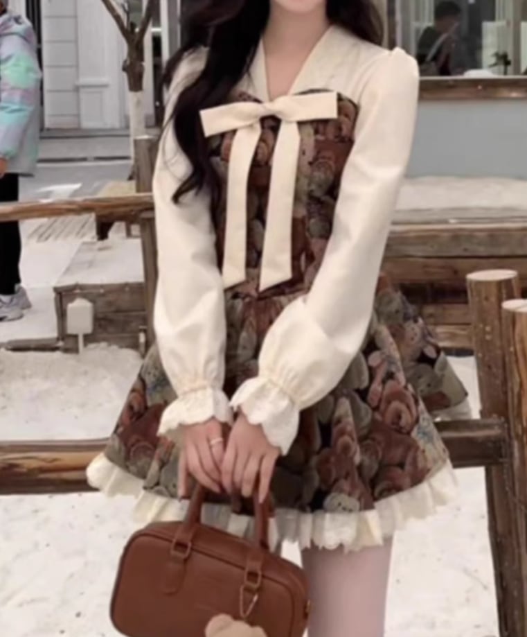 ティアードレースリボンノースリワンピ ・66928