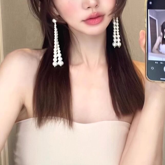 2種/リボンパールラインピアス・イヤリング ・24533